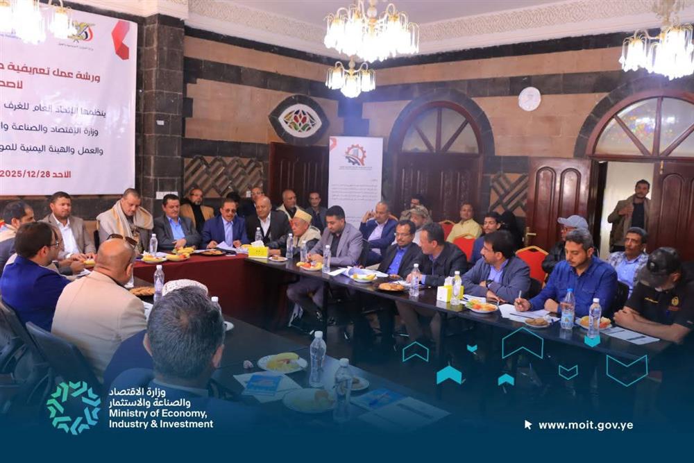 اقام الاتحاد العام للغرف التجارية الصناعية اليمنية، اليوم، ورشة عمل حول الصحة والسلامة المهنية لأصحاب الأعمال، بحضور القائم بأعمال وزير الاقتصاد والصناعة والاستثمار سام احمد البشيري ، ومشاركة ممثلين عن الجهات الحكومية والقطاع الخاص .